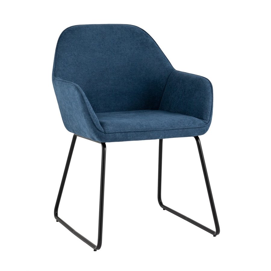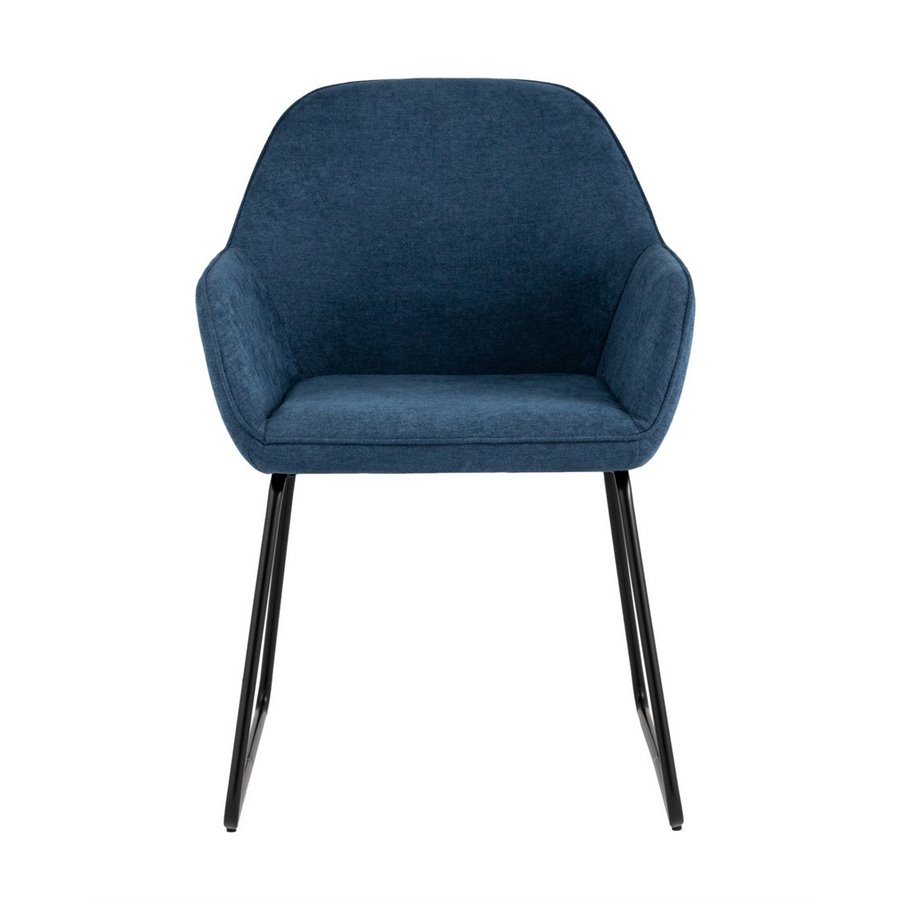 Мягкий обеденный стул на ножках-полозьях черного цвета.