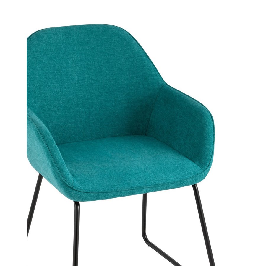 Мягкий обеденный стул на ножках-полозьях черного цвета.