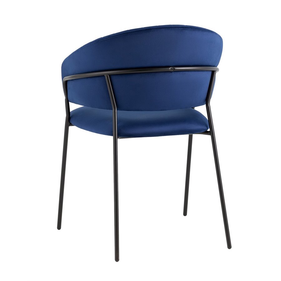 Стул с подлокотниками Бруно велюр синий ножки черные металл