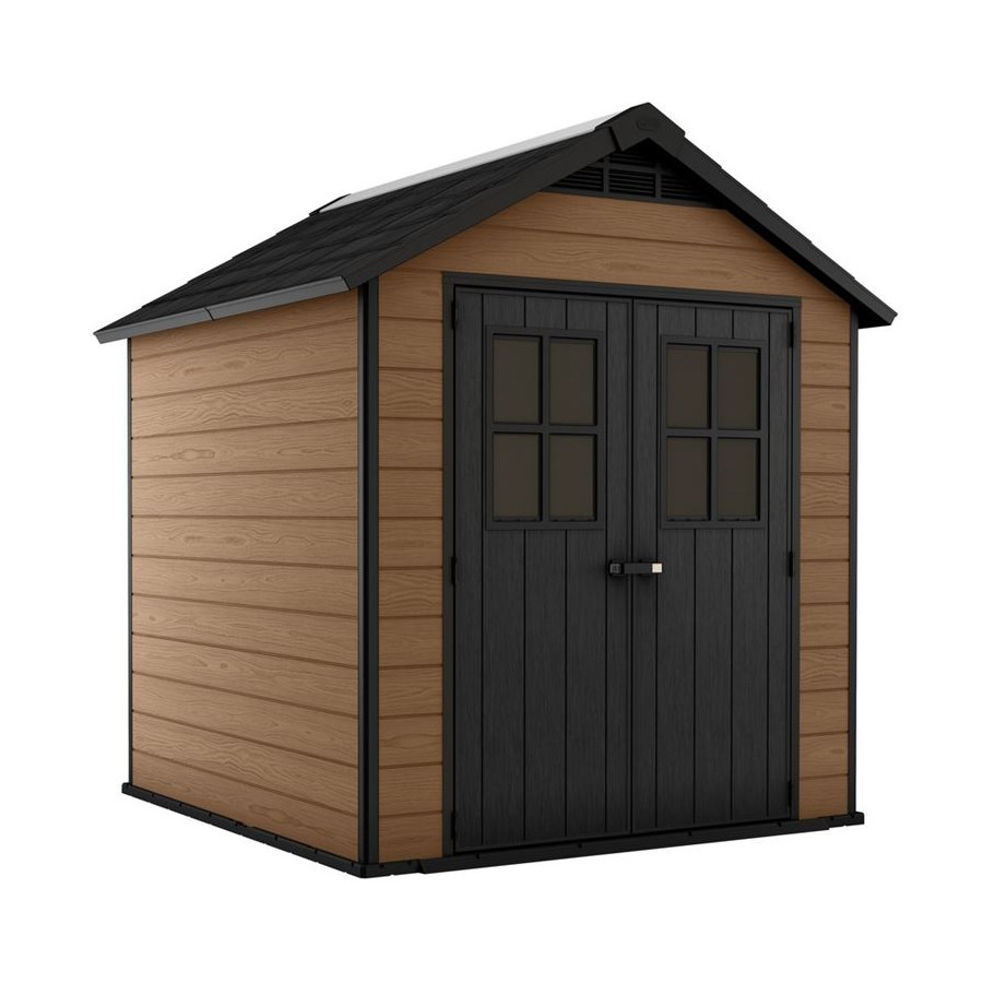 Привлекательный и крайне функциональный хозяйственный домик Newton 757 устанавливает новый стандарт хранения садовых аксессуаров. Достоинства домика - это утонченный дизайн и традиционная деревянная отделка наружной поверхности, а также исключительная прочность и долговечность внутренней части. Укрепленной конструкции не страшен даже самый сильный дождь, ветер и снег. Пол без проблем выдержит вес газонокосилки и защитит ее от грязи и дождя. Окно по всей длине и встроенная вентиляция обеспечивают приток света и свежего воздуха. Newton 757 сконструирован из панелей, изготовленных из самого современного материала Evotech+ – усовершенствованного композита, обеспечивающего продукции эстетичный вид настоящего дерева и не требующего ухода.