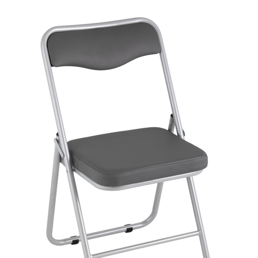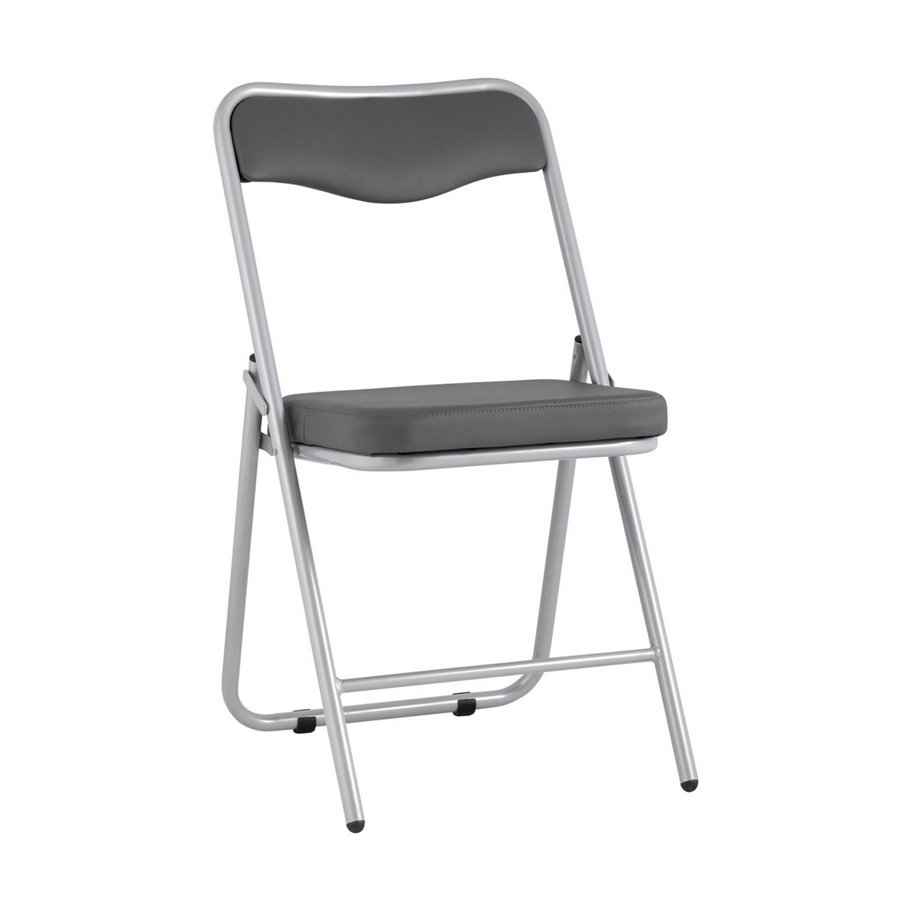 Складной стул Джонни экокожа серый каркас металлик