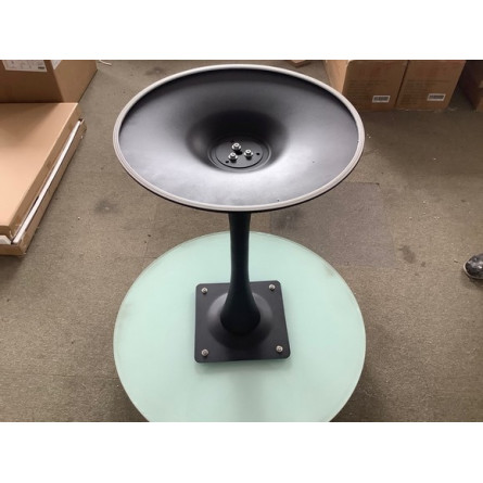 Ножка и основание стола выполнены из металла, окрашенного в черный цвет. Диаметр основания 49 см.
