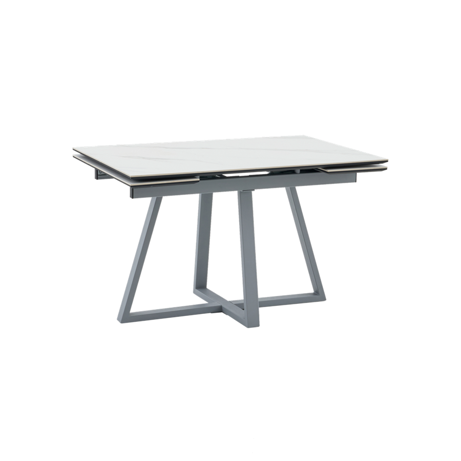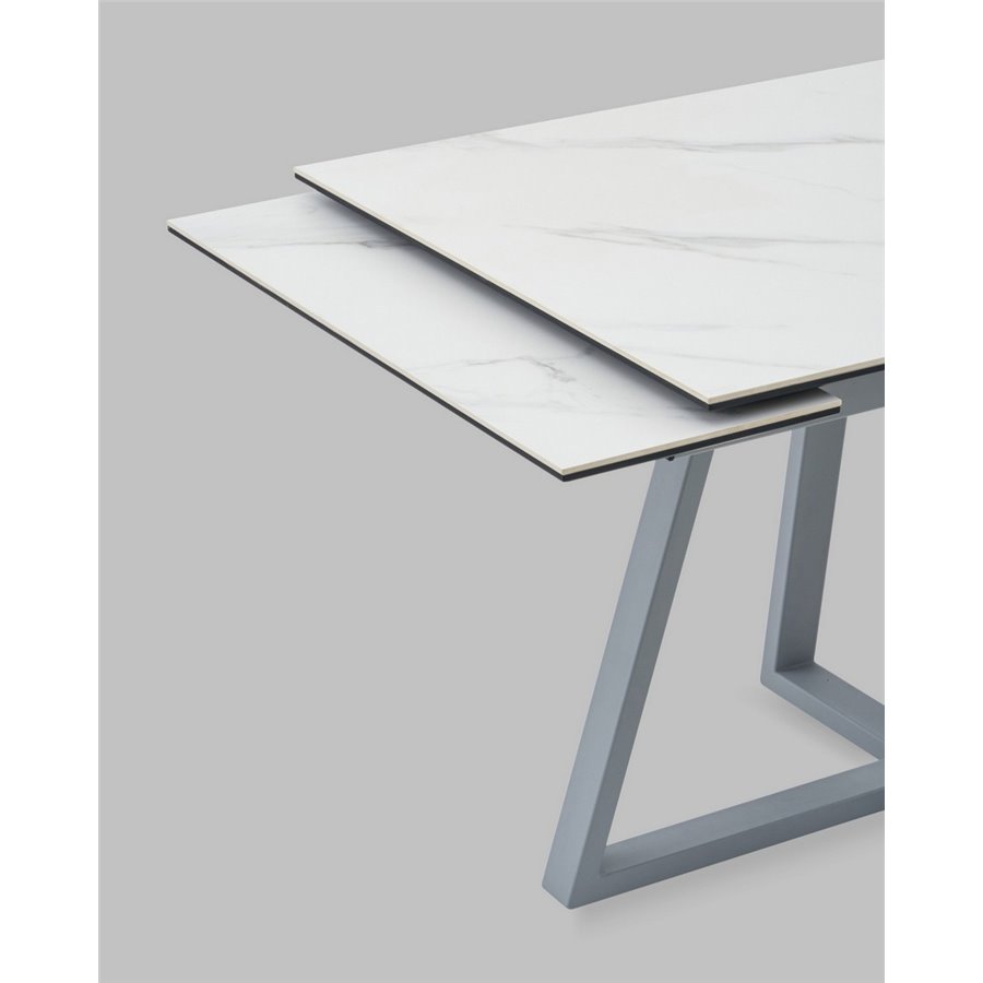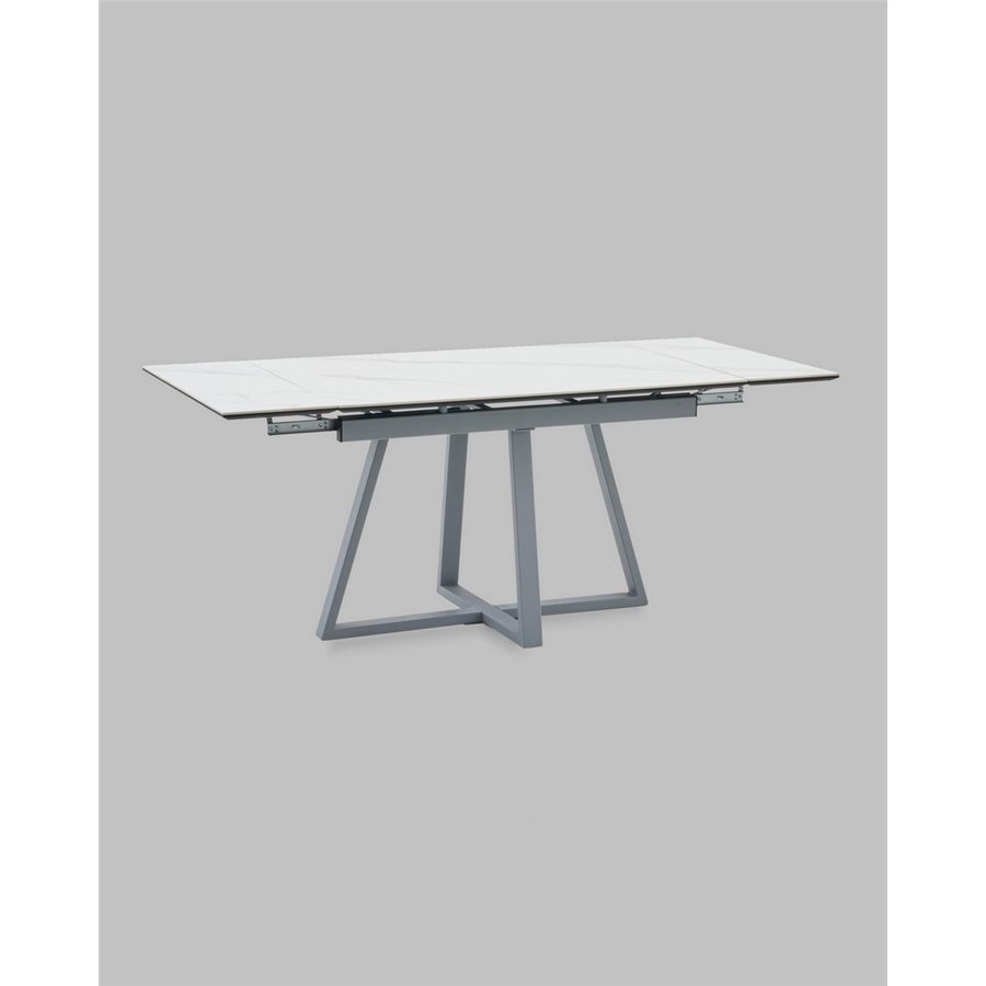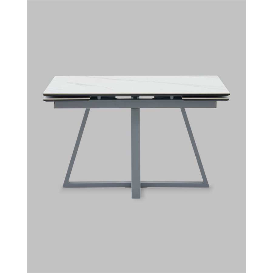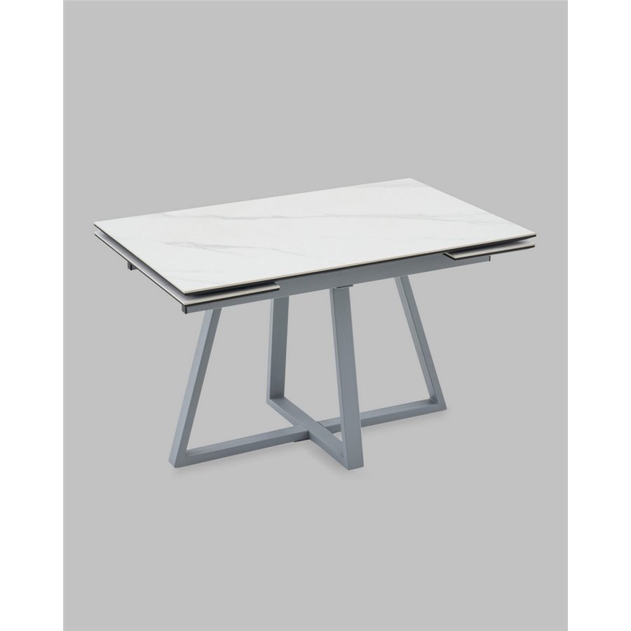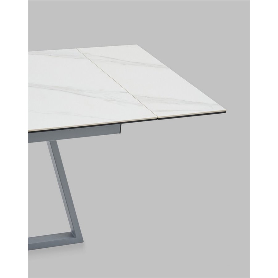 Стол Керас 120-180/80/75 столешница МДФ16/керамика Snow white подстолье металл серый