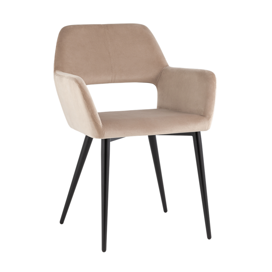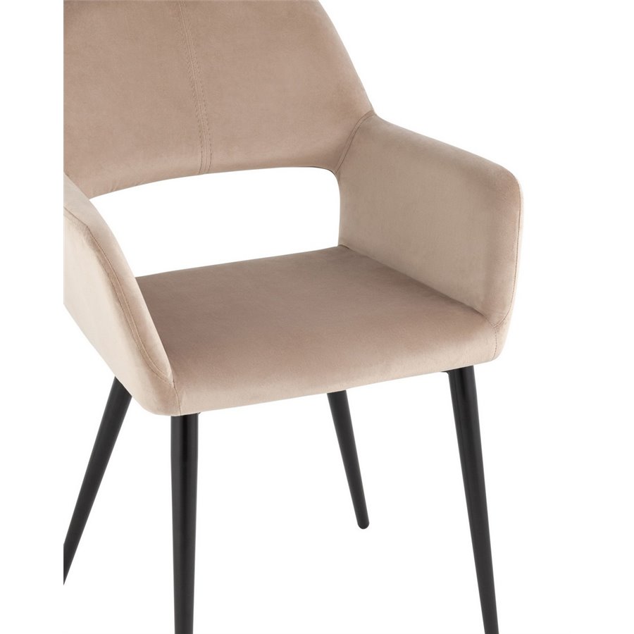 Денди с подлокотниками велюр бежевый ножки металл черные