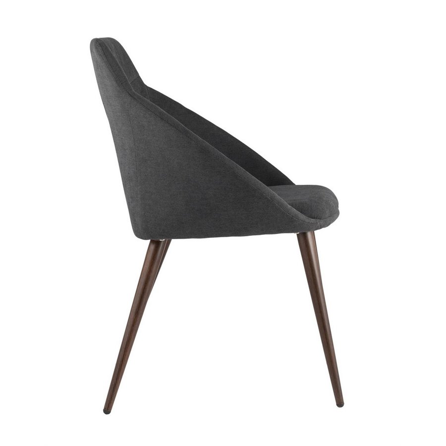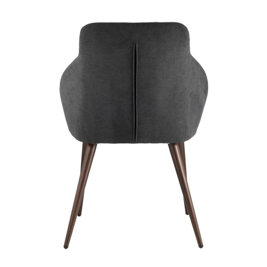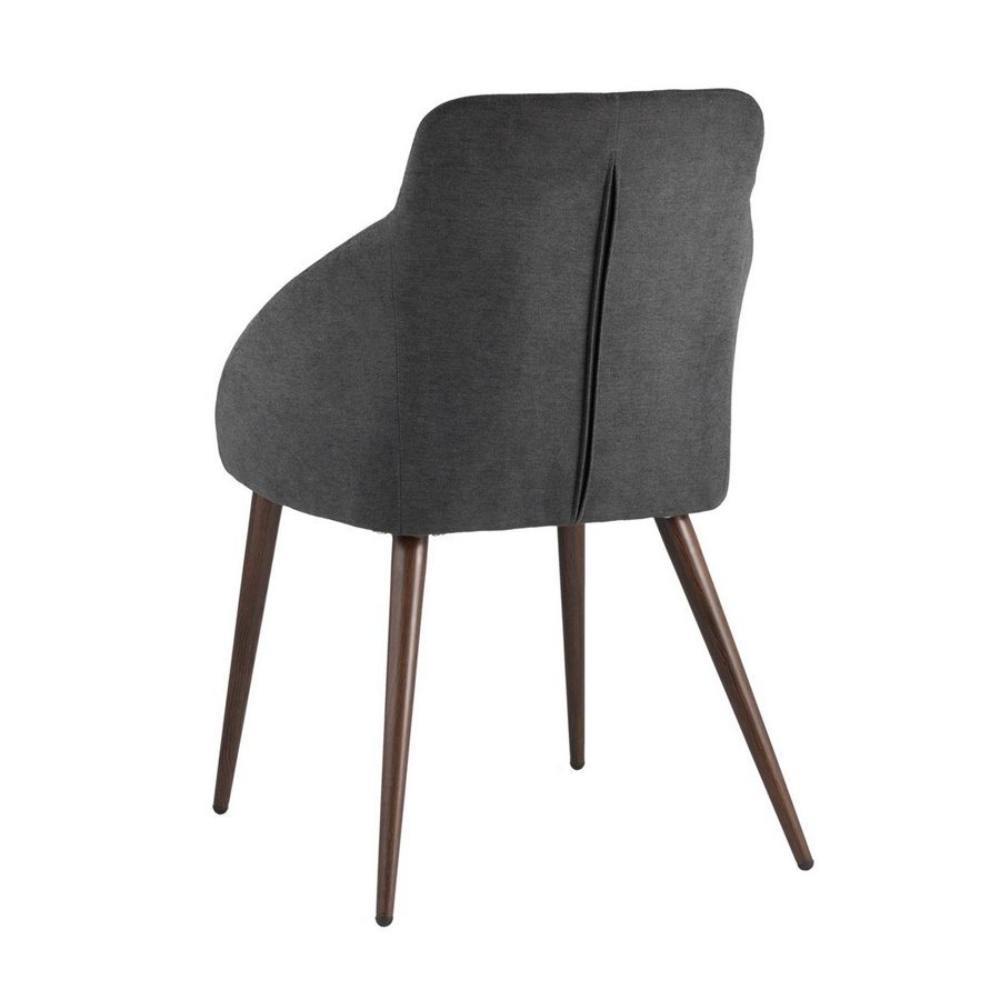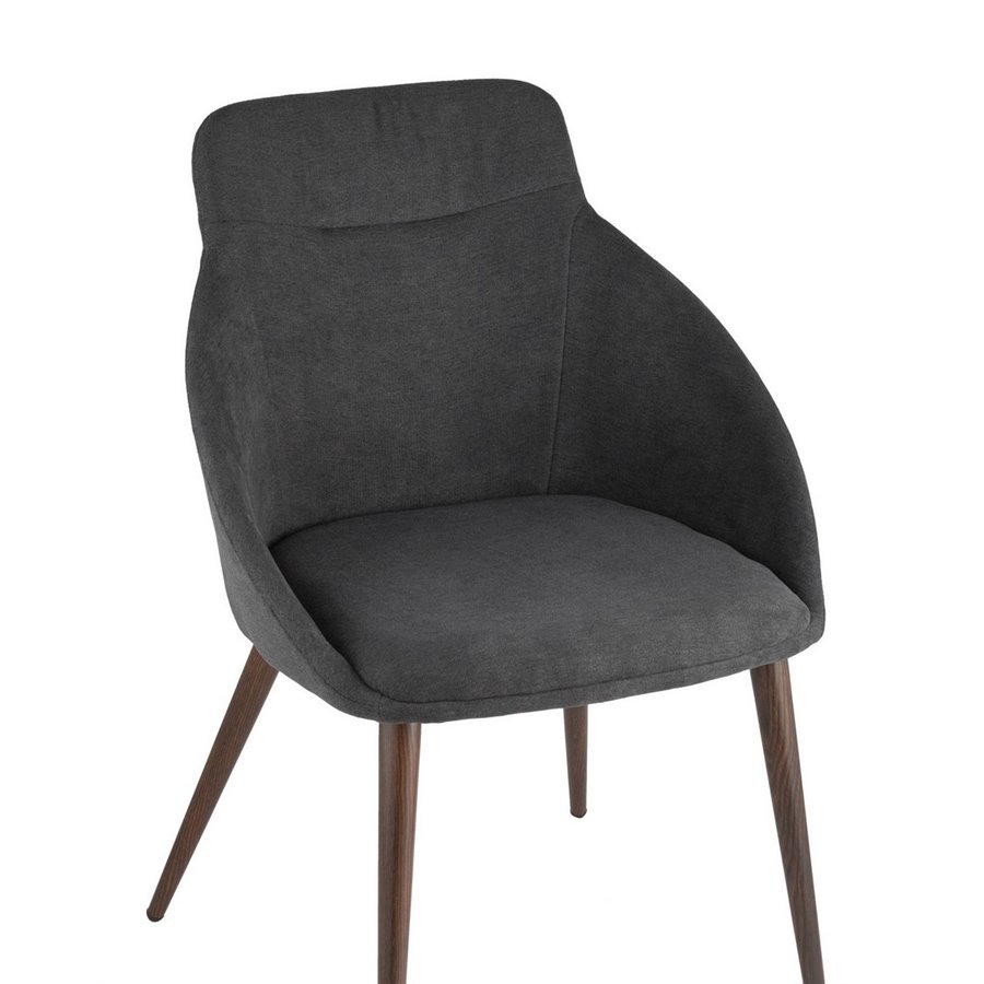 Стильный и мягкий стул для кухни имеет широкую эргономичную спинку и удобные подлокотники. Обивкой послужила высококачественная плотная ткань. Ножки металлические с принтом под дерево.