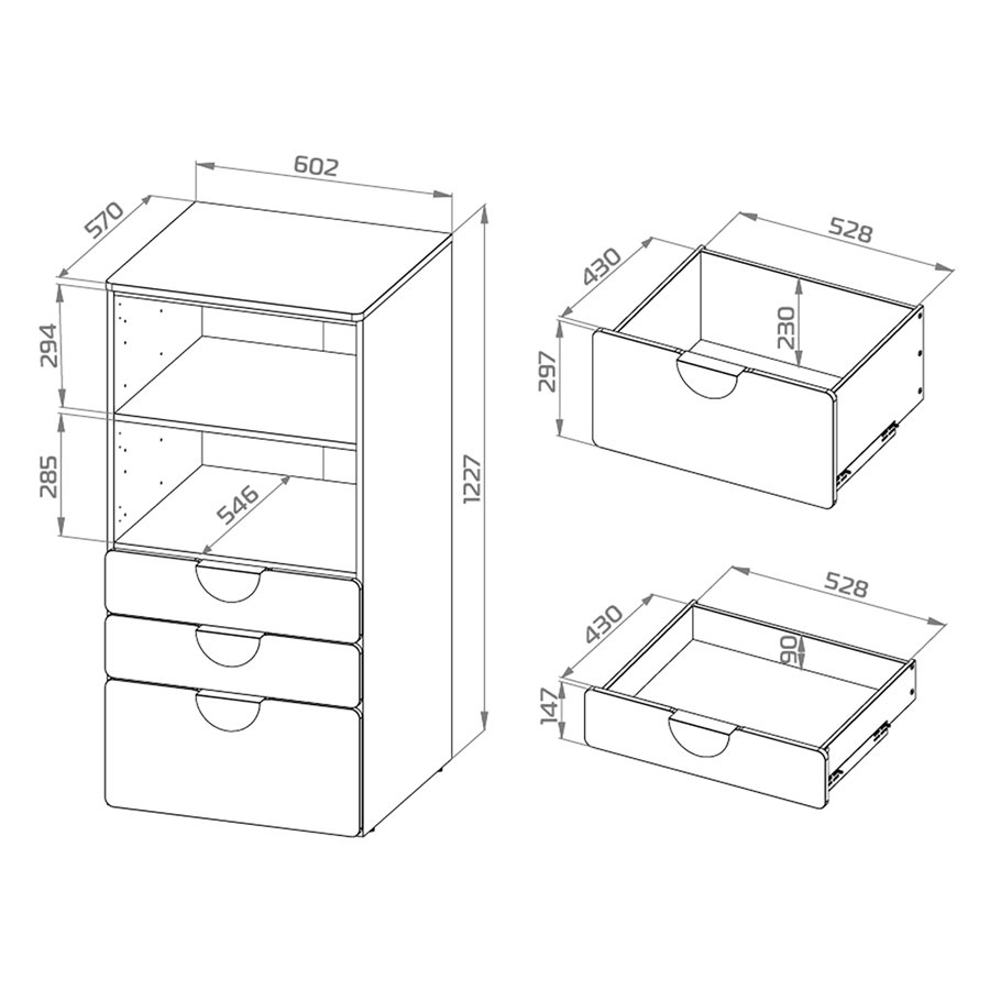 стеллаж Стува / Пикси с 3 выдвижными ящиками 60x57x120 (S02023) - 1 шт,