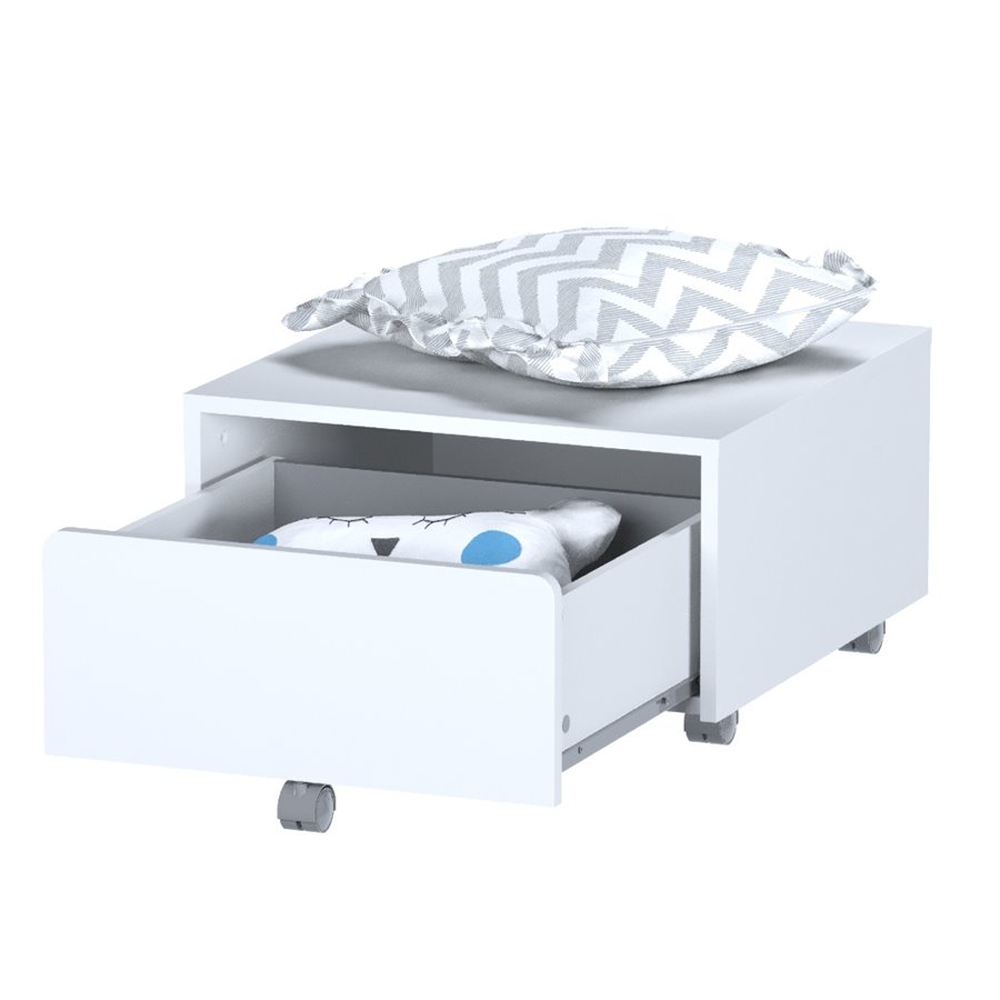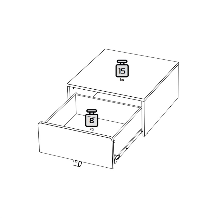 Тумба с выдвижным ящиком оснащена колесами, благодаря которым ее легко передвигать и размещать в любом удобном месте комнаты.