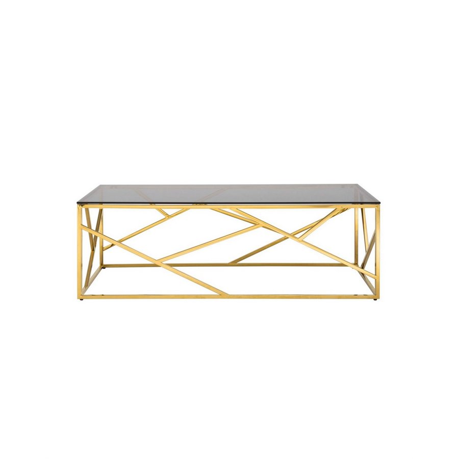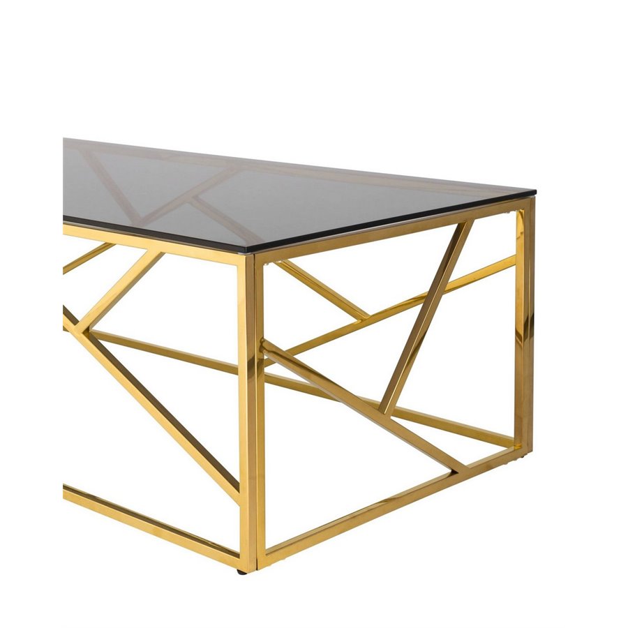 Журнальный стол 120*60 АРТ ДЕКО стекло smoke сталь золото Stool Group