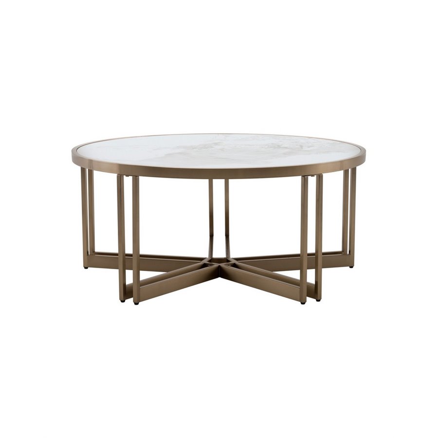 Журнальный столик Алиада 90х90 см светлая керамика сталь шампань Stool Group